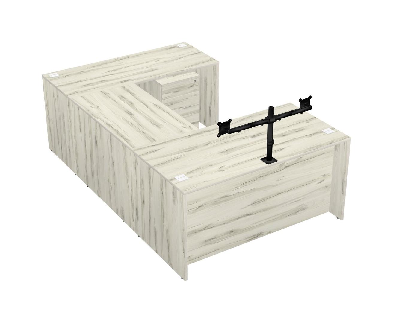 Bureau En U, Crédence, Tiroirs Mobiles En Bois, Bras Pour écran (double Bras)