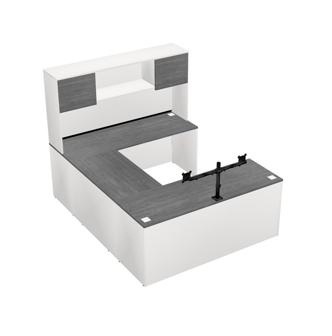 Bureau En U, Crédence, Bureau + Huche + Bras Pour écran (bras Doubles)