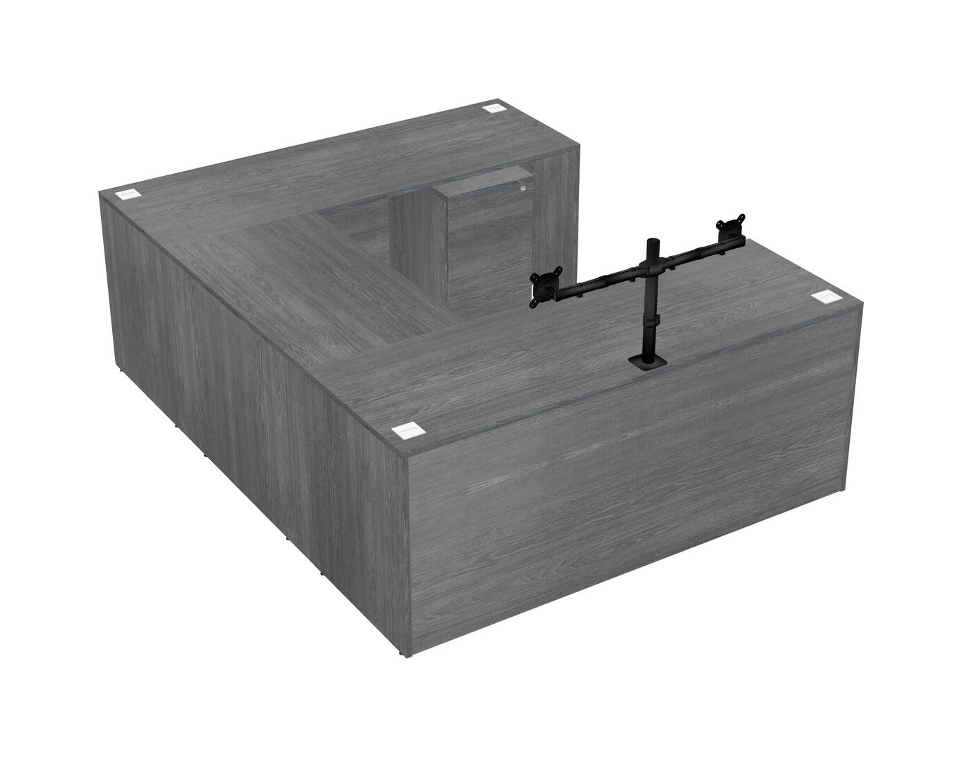 Bureau En U, Crédence, Tiroirs Mobiles En Bois, Bras Pour écran (double Bras)