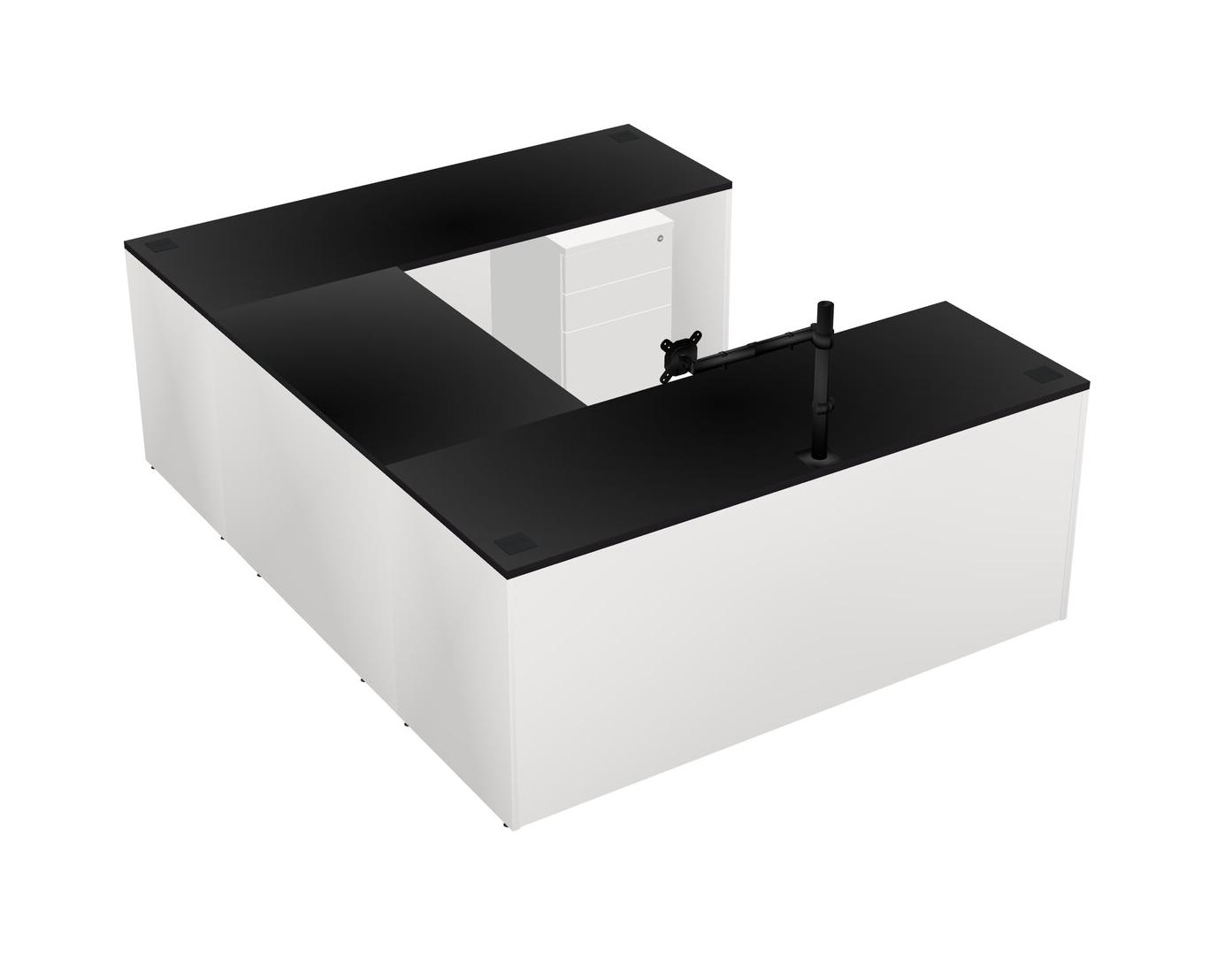 Bureau En U, Crédence, Tiroirs Mobiles En Bois, Bras D'écran (bras Simple)