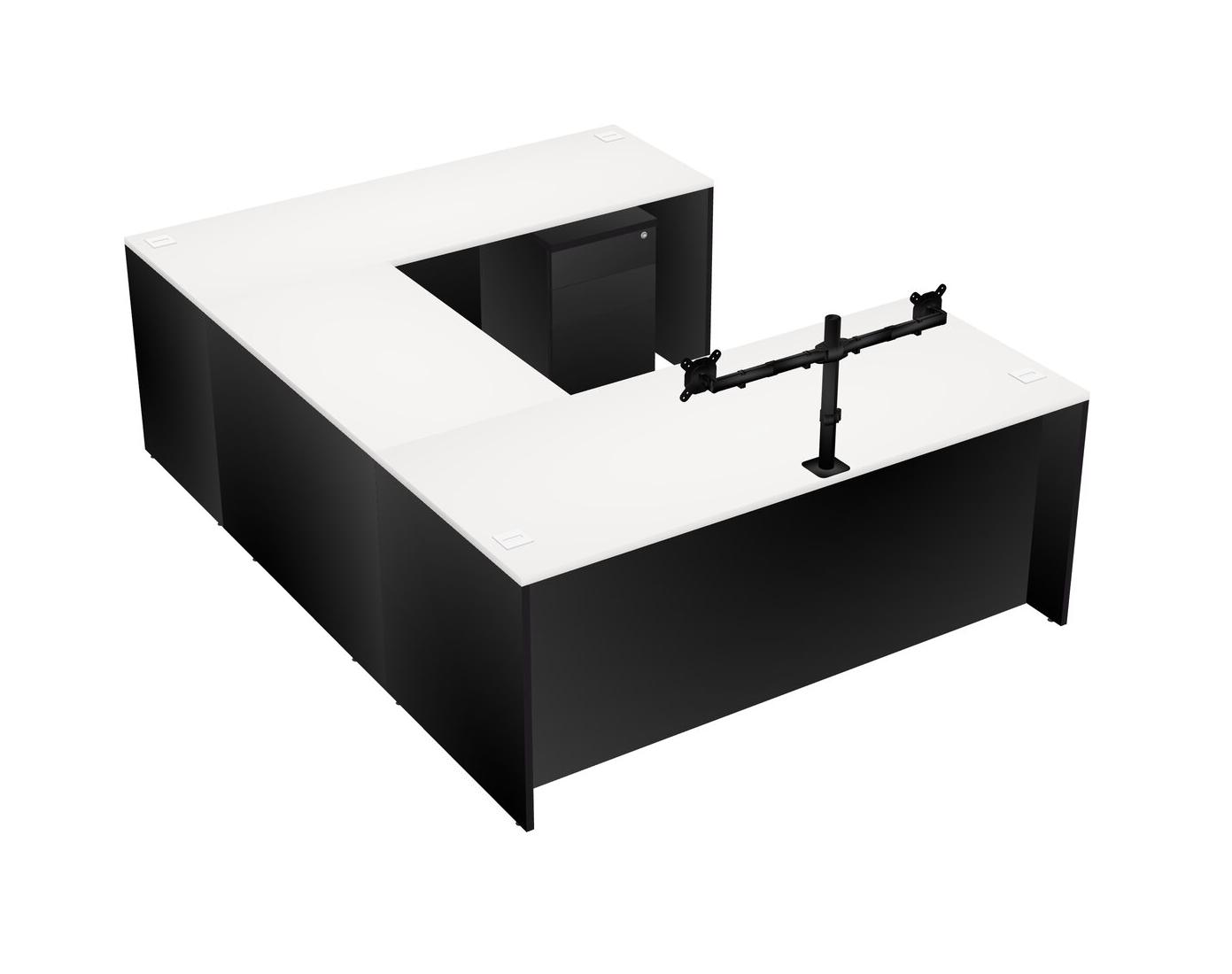 Bureau En U, Crédence, Tiroirs Mobiles En Bois, Bras Pour écran (double Bras)