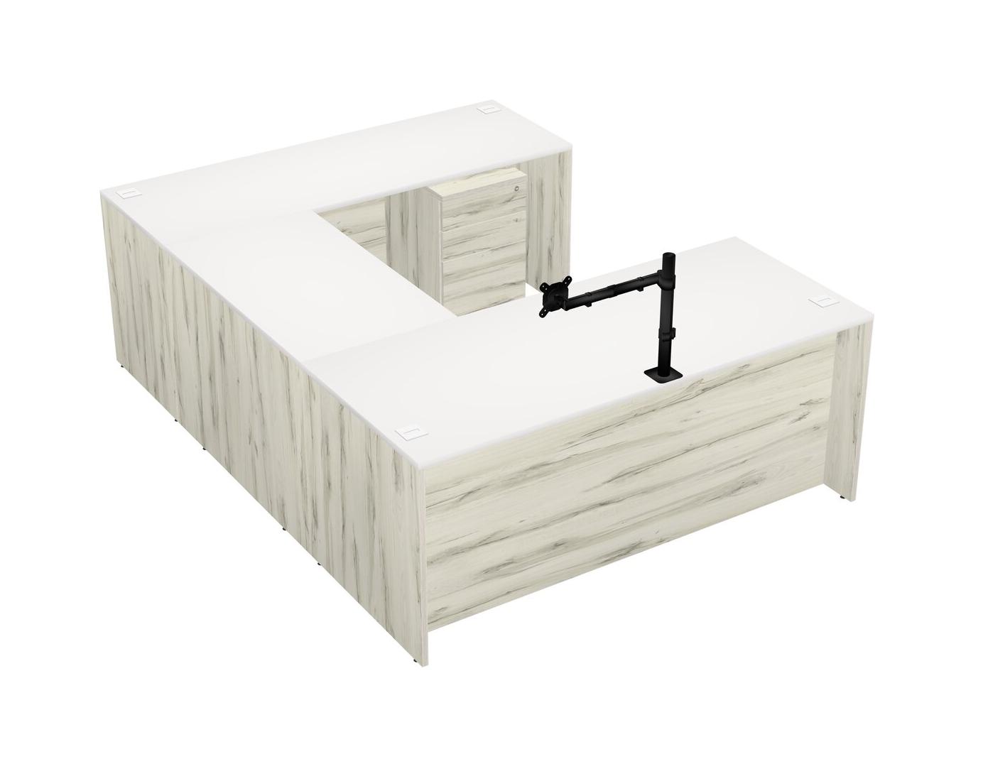 Bureau En U, Crédence, Tiroirs Mobiles En Bois, Bras D'écran (bras Simple)