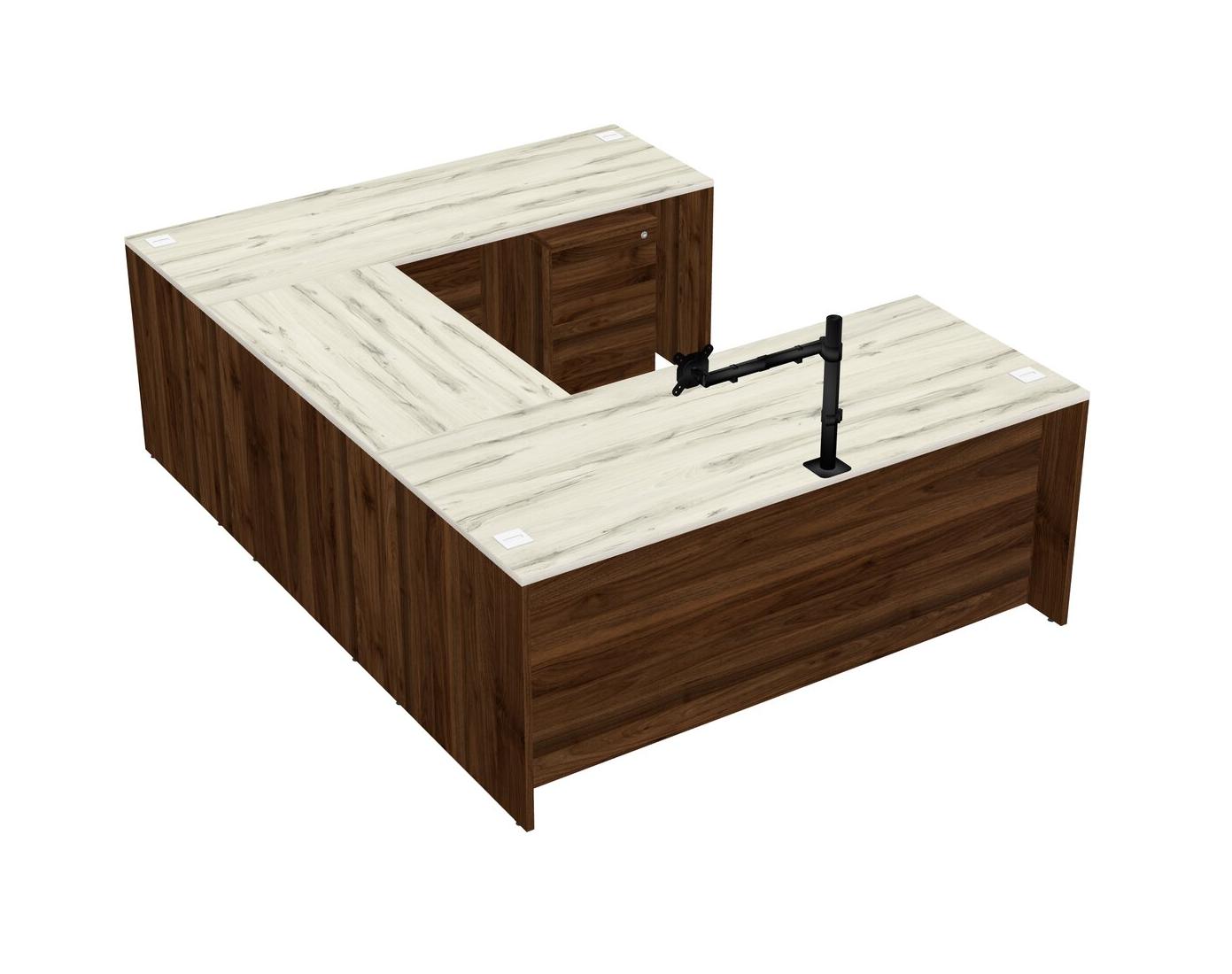 Bureau En U, Crédence, Tiroirs Mobiles En Bois, Bras D'écran (bras Simple)