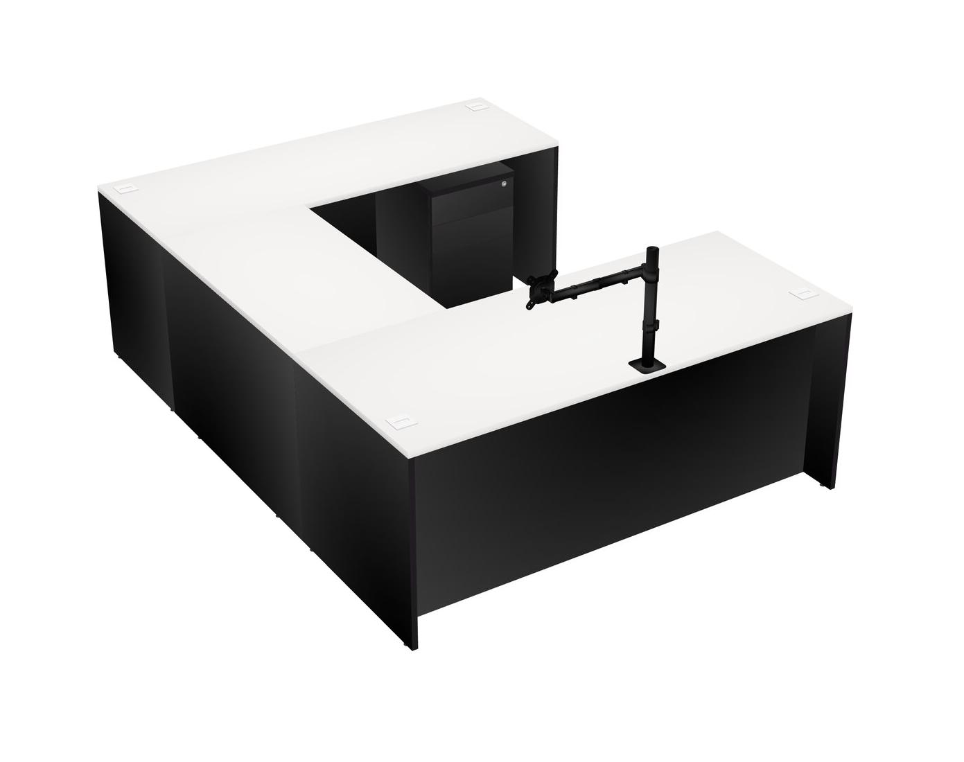 Bureau En U, Crédence, Tiroirs Mobiles En Bois, Bras D'écran (bras Simple)
