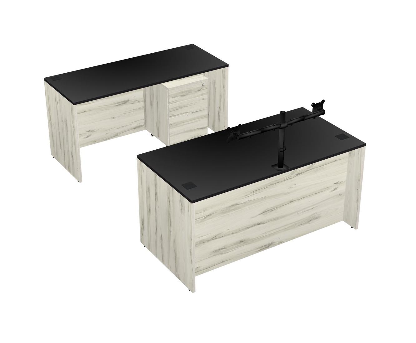 Bureau Parallèle, Bureau Crédence, Tiroirs Mobiles En Bois Et Bras Pour écran (bras Doubles)