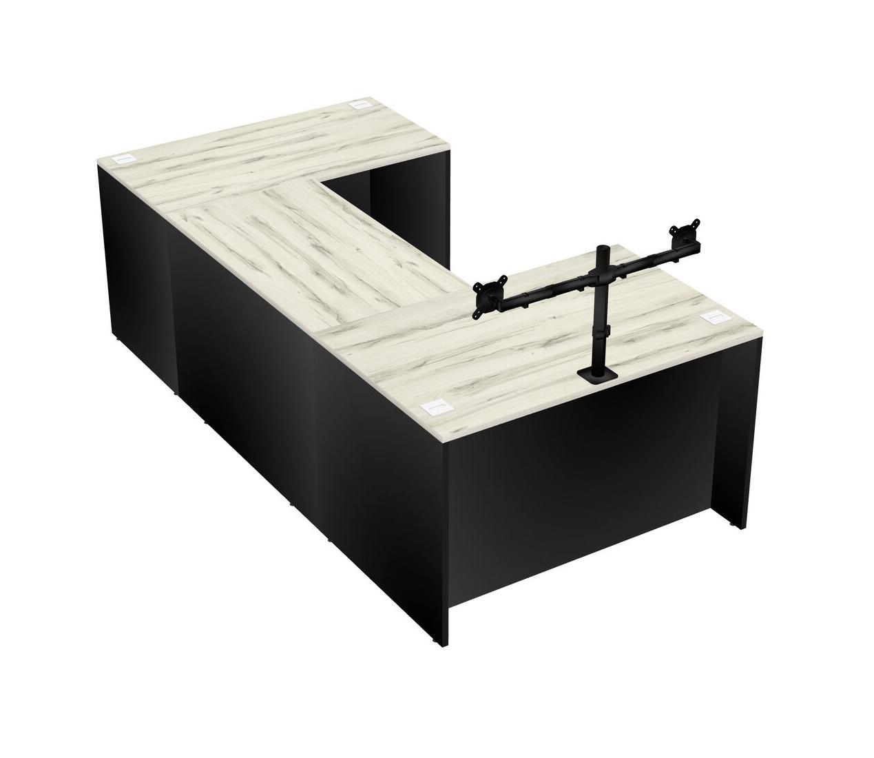 Bureau En U, Bureau Crédence + Bras Pour écran (bras Doubles)