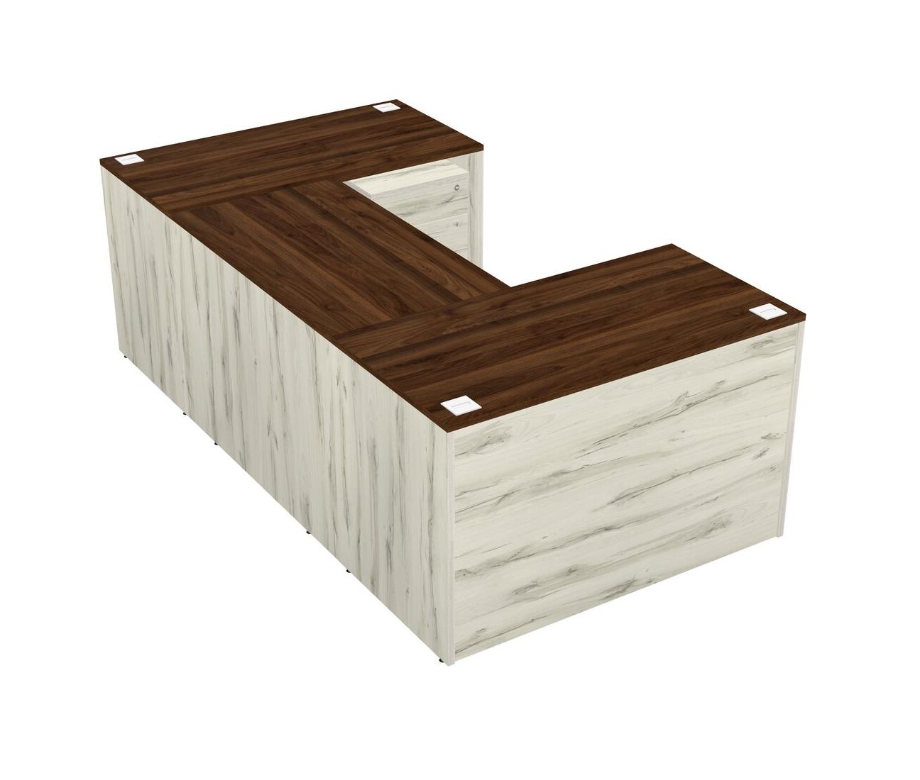 Bureau En U Avec Crédence Et Tiroirs Mobiles En Bois