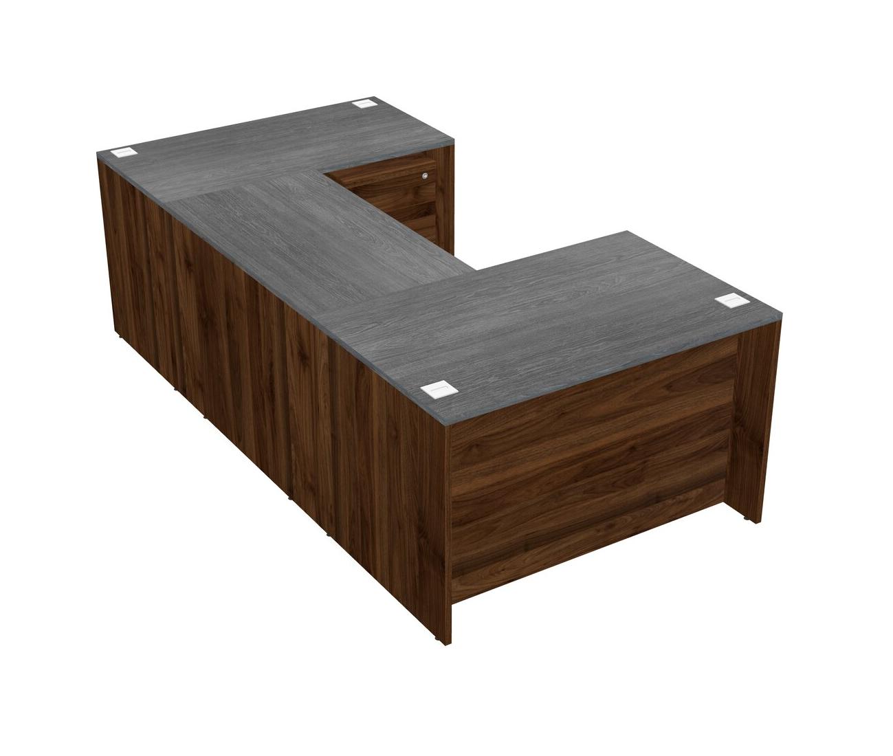 Bureau En U Avec Crédence Et Tiroirs Mobiles En Bois