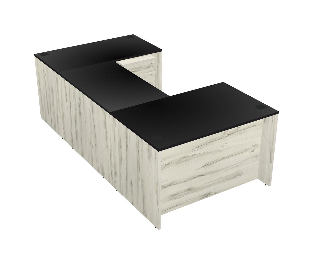 Bureau En U Avec Crédence Et Tiroirs Mobiles En Bois