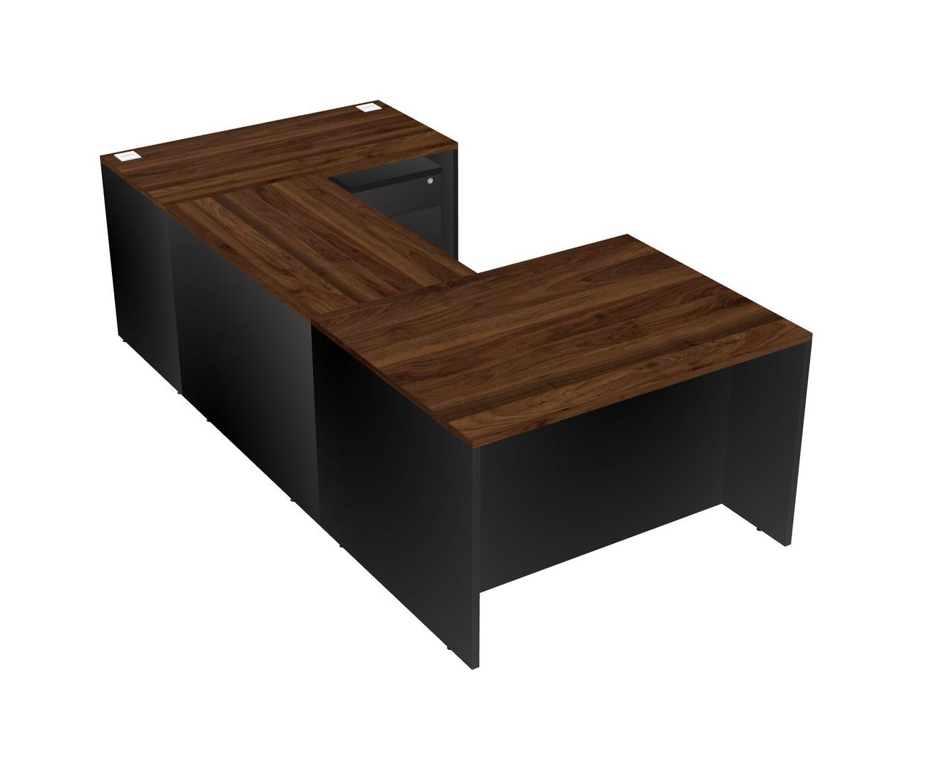 Bureau En U Avec Crédence Et Tiroirs Mobiles En Bois