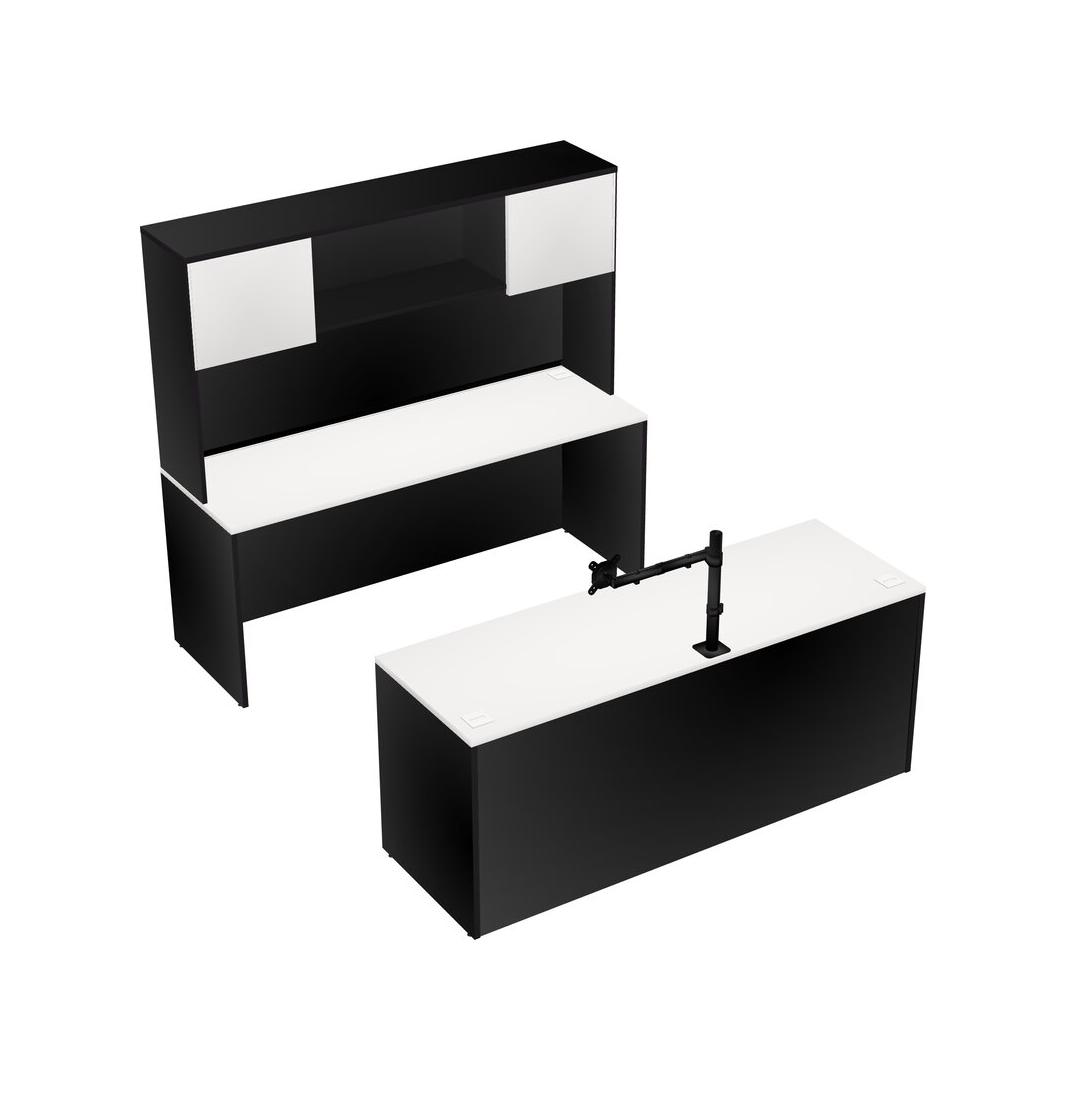Bureau Parallèle, Bureau Crédence + Huche + Bras Pour écran (bras Simple)
