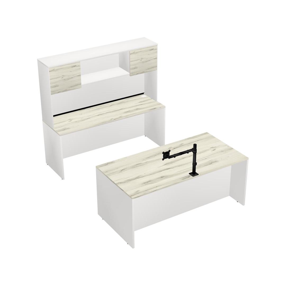 Bureau Parallèle, Bureau Crédence + Huche + Bras Pour écran (bras Simple)
