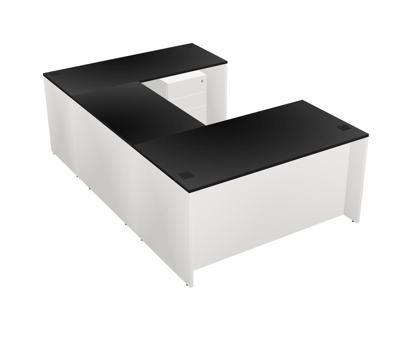 Bureau En U Avec Crédence Et Tiroirs Mobiles En Bois