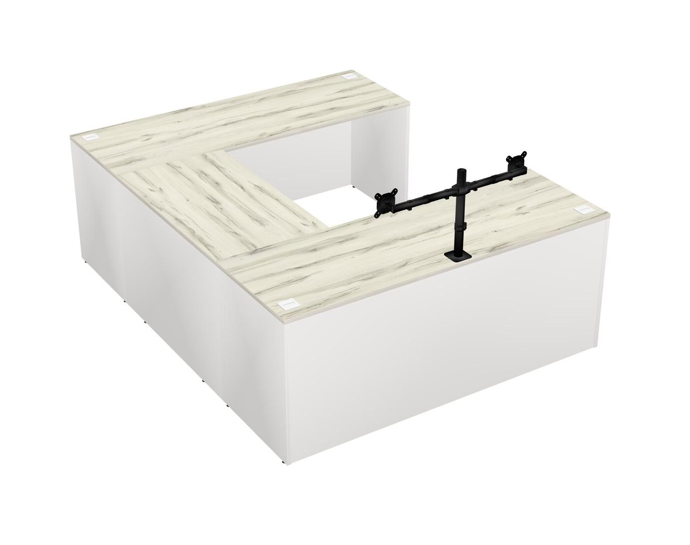 Bureau En U, Bureau Crédence + Bras Pour écran (bras Doubles)