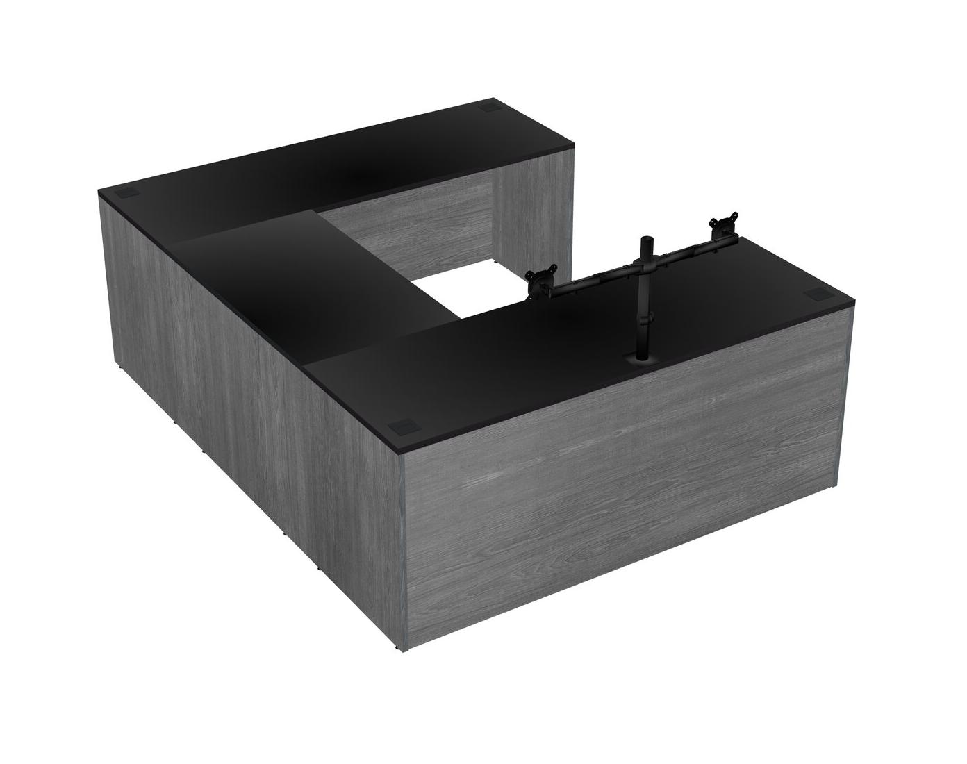 Bureau En U, Bureau Crédence + Bras Pour écran (bras Doubles)