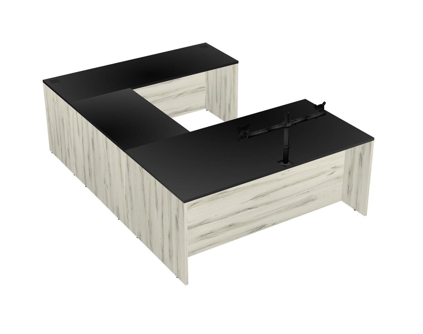 Bureau En U, Bureau Crédence + Bras Pour écran (bras Doubles)