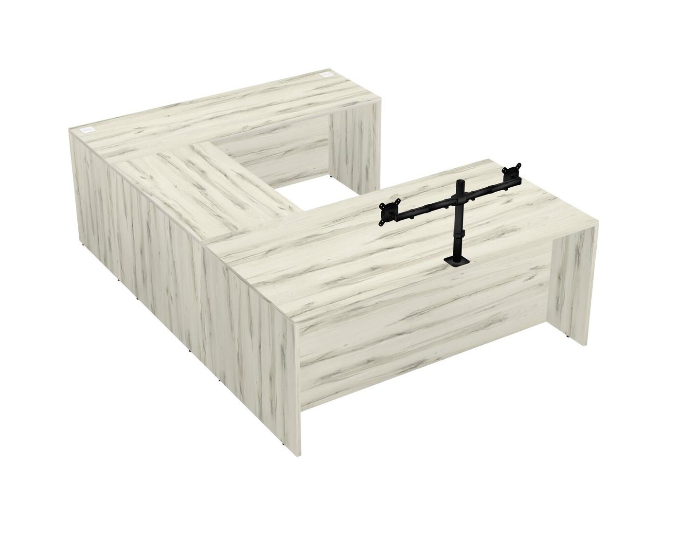 Bureau En U, Bureau Crédence + Bras Pour écran (bras Doubles)