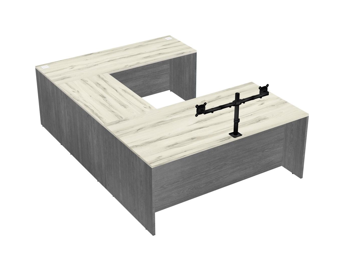 Bureau En U, Bureau Crédence + Bras Pour écran (bras Doubles)