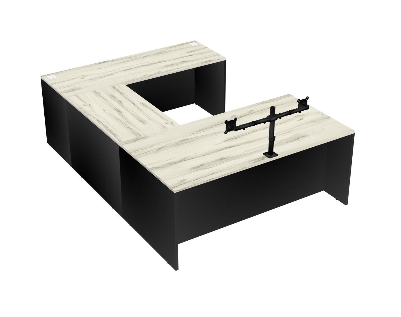 Bureau En U, Bureau Crédence + Bras Pour écran (bras Doubles)