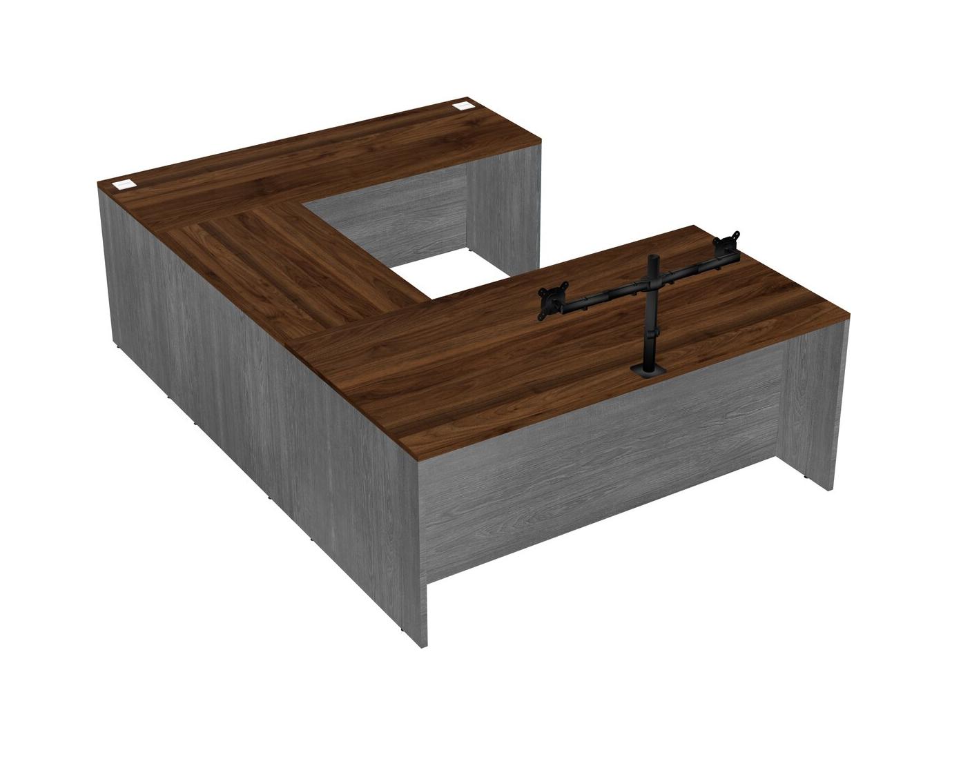 Bureau En U, Bureau Crédence + Bras Pour écran (bras Doubles)