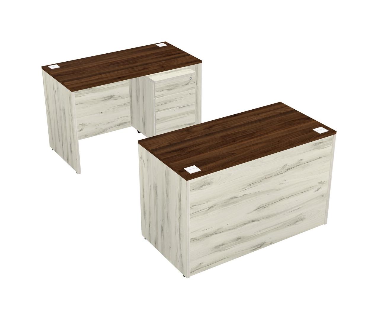 Bureau Parallèle Avec Crédence Et Tiroirs Mobiles En Bois