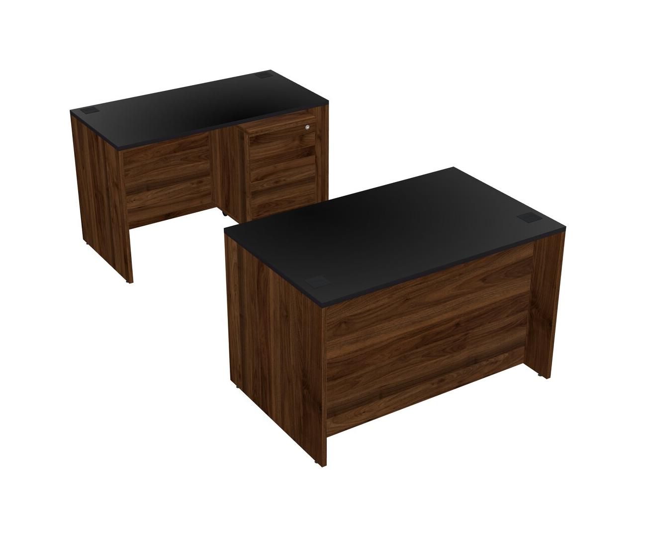 Bureau Parallèle Avec Crédence Et Tiroirs Mobiles En Bois