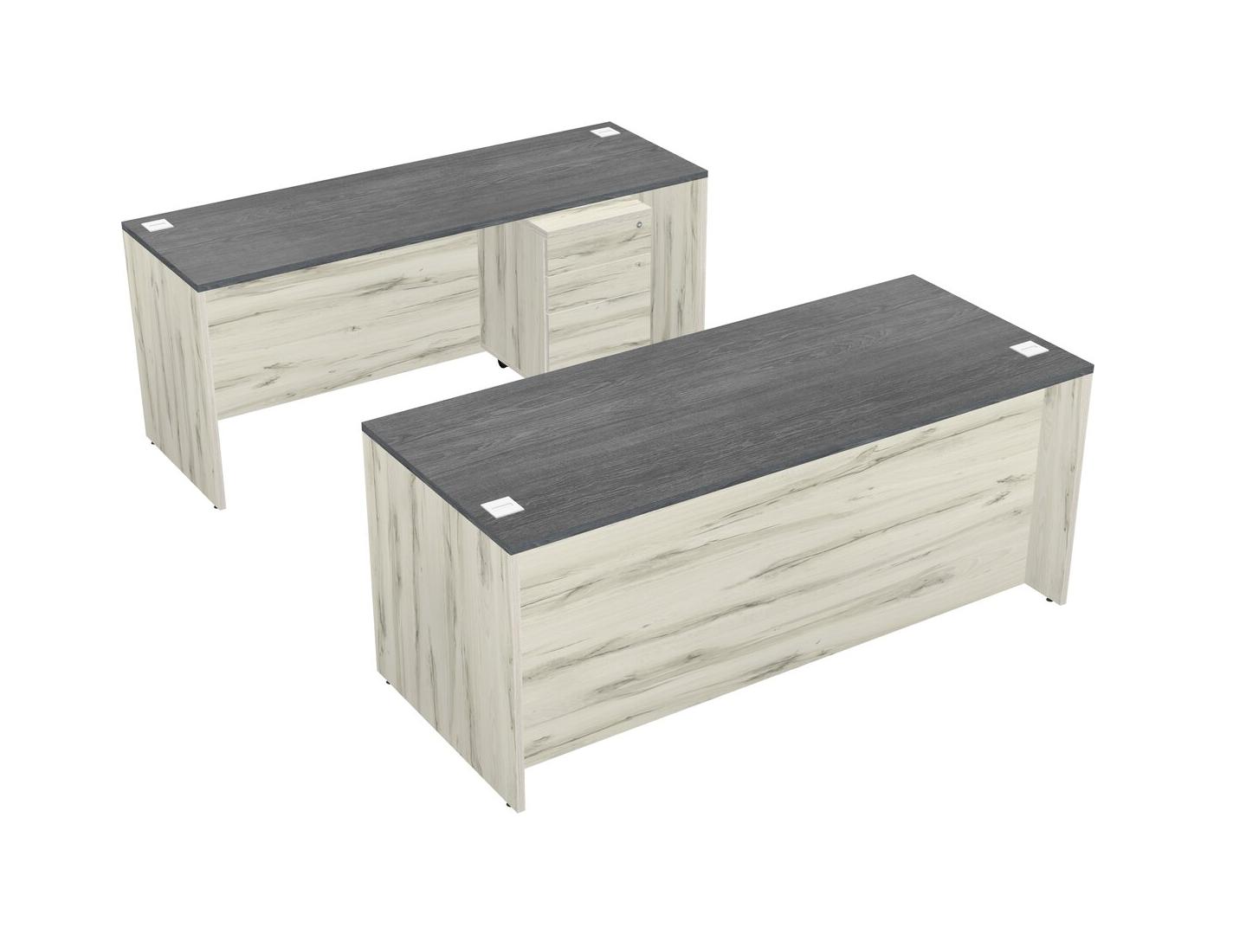 Bureau Parallèle Avec Crédence Et Tiroirs Mobiles En Bois