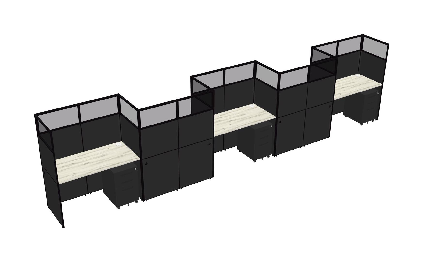 Postes De Travail Rectangulaires Heinne Holz Pour 5 Personnes - Disposition En Zigzag + Tiroirs Mobiles En Métal Noir