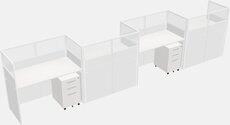 Postes De Travail Rectangulaires Blancs Pour 4 Personnes - Disposition En Zigzag + Tiroirs Mobiles En Métal Blanc