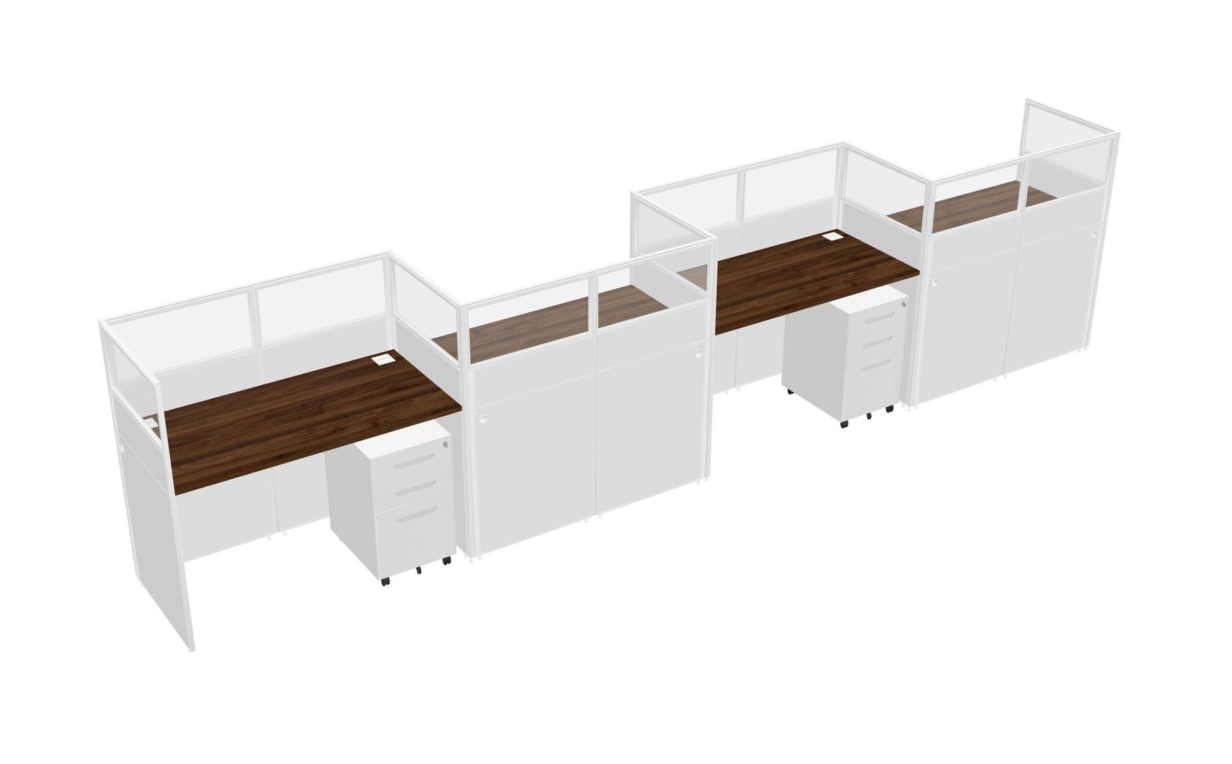 Postes De Travail Rectangulaires En Noyer Columbia Pour 4 Personnes - Formation En Zigzag + Tiroirs Mobiles En Métal Blanc