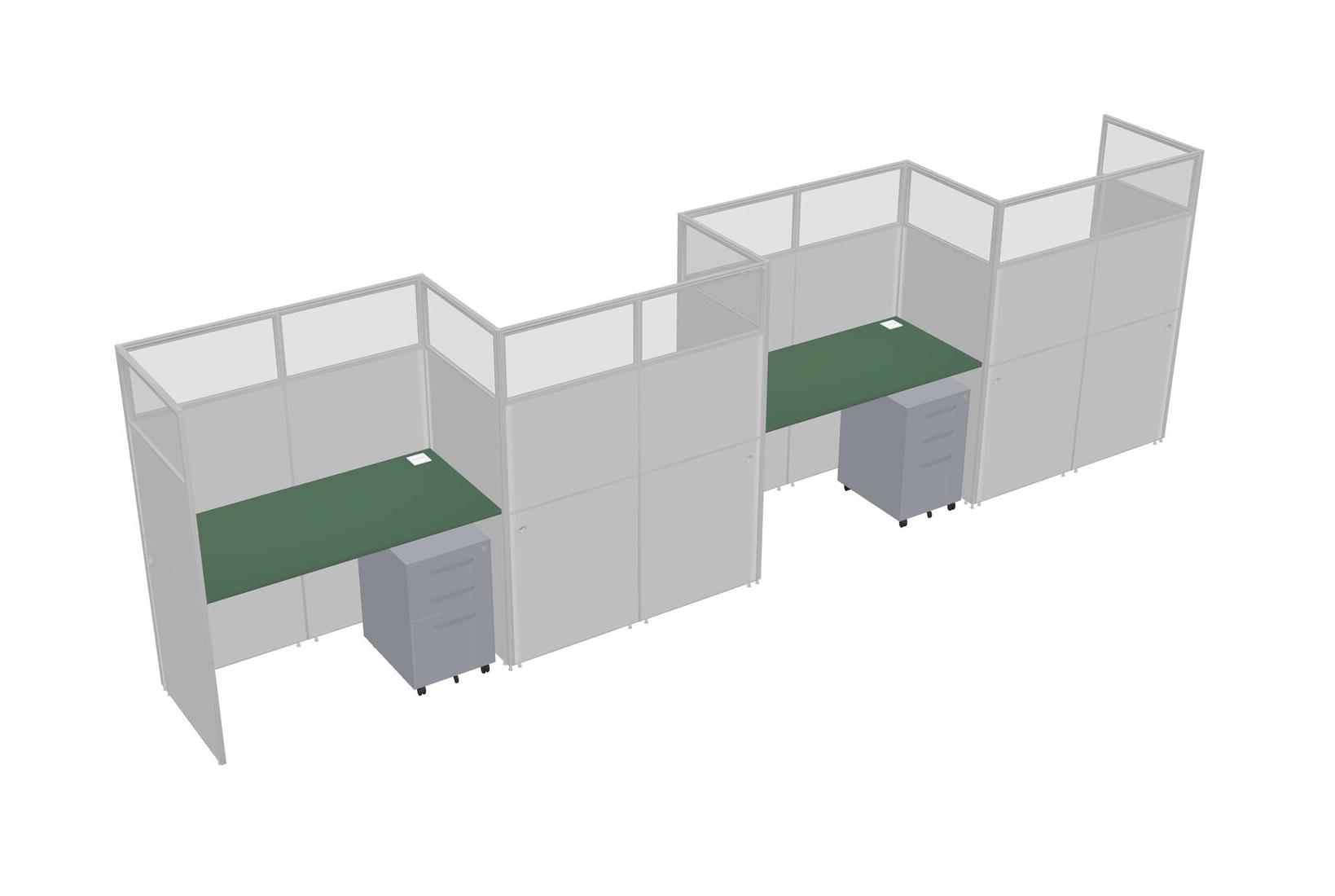Postes De Travail Rectangulaires Verts Pour 4 Personnes - Formation En Zigzag + Tiroirs Mobiles En Métal Gris