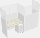 Postes De Travail Rectangulaires Heinne Holz Pour 2 Personnes - Disposition En Zigzag + Tiroirs Mobiles En Métal Blanc