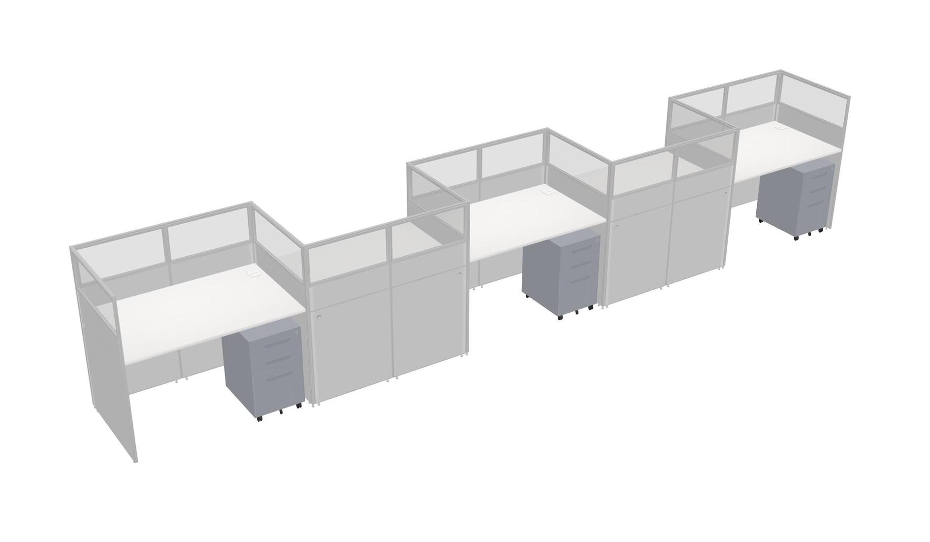 Postes De Travail Rectangulaires Blancs Pour 5 Personnes - Disposition En Zigzag + Tiroirs Mobiles En Métal Gris