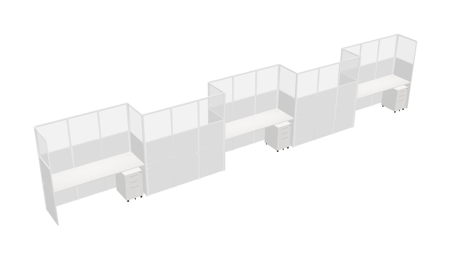 Postes De Travail Rectangulaires Blancs Pour 5 Personnes - Disposition En Zigzag + Tiroirs Mobiles En Métal Blanc
