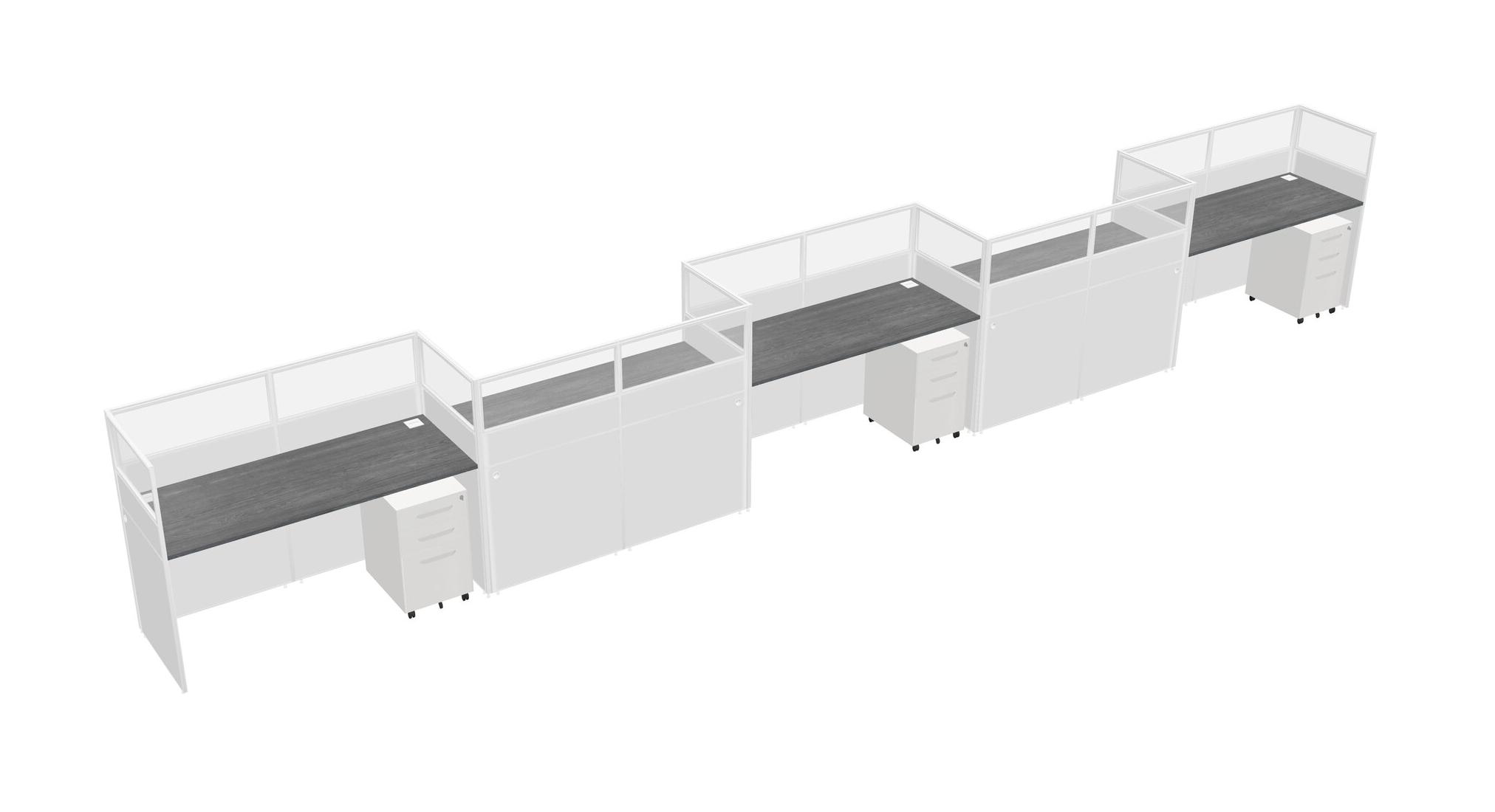 Postes De Travail Rectangulaires Gris Pour 5 Personnes - Disposition En Zigzag + Tiroirs Mobiles En Métal Blanc