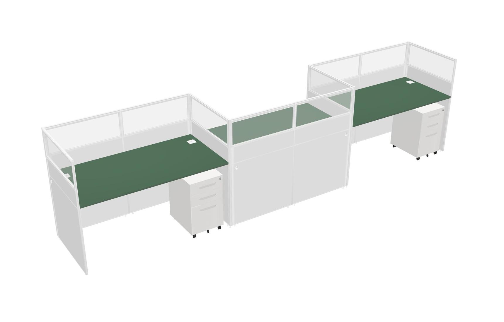 Postes De Travail Rectangulaires Verts Pour 3 Personnes - Formation En Zigzag + Tiroirs Mobiles En Métal Blanc