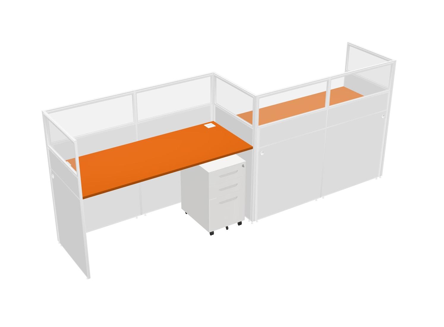 Postes De Travail Rectangulaires Orange Pour 2 Personnes - Formation En Zigzag + Tiroirs Mobiles En Métal Blanc