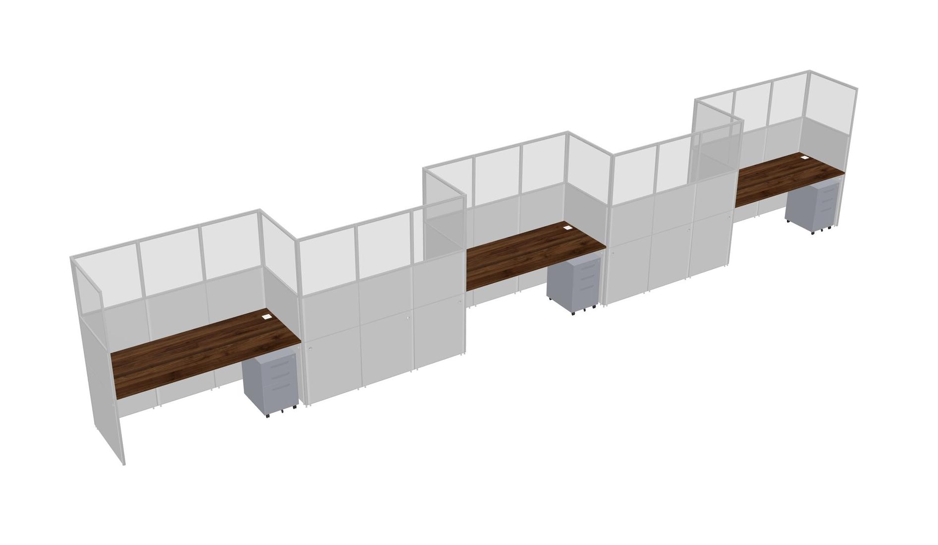 Postes De Travail Rectangulaires En Noyer Columbia Pour 5 Personnes - Formation En Zigzag + Tiroirs Mobiles En Métal Gris