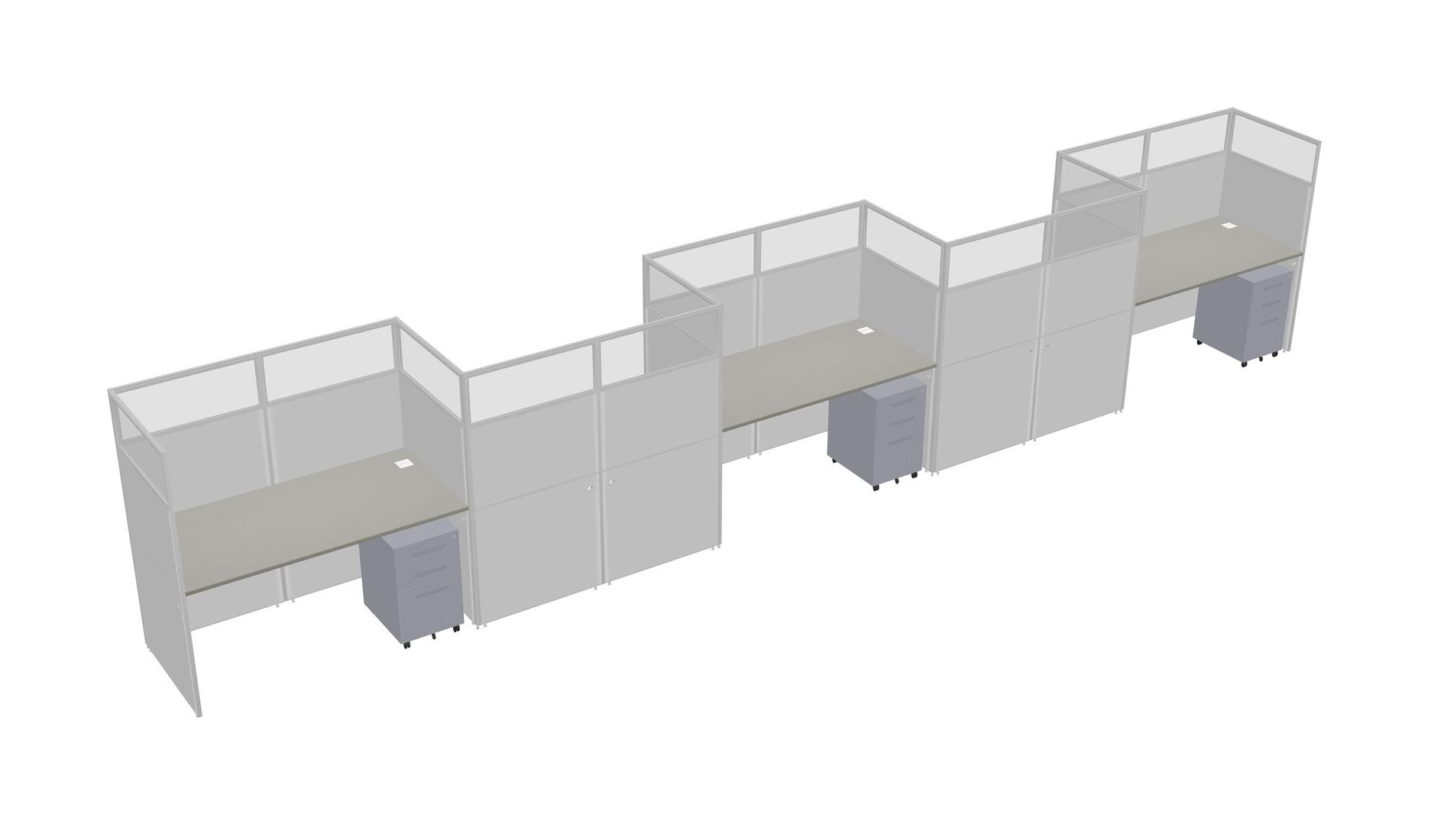 Postes De Travail Rectangulaires Grey Shadows Pour 5 Personnes - Formation En Zigzag + Tiroirs Mobiles En Métal Gris