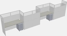 Postes De Travail Rectangulaires Grey Shadows Pour 4 Personnes - Formation En Zigzag + Tiroirs Mobiles En Métal Gris