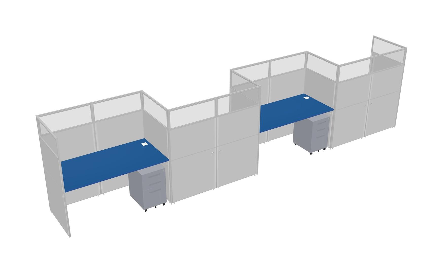 Postes De Travail Rectangulaires Prism Blue Pour 4 Personnes - Formation En Zigzag + Tiroirs Mobiles En Métal Gris