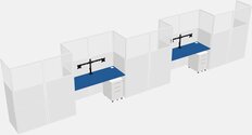 Postes De Travail Rectangulaires Prism Blue Pour 5 Personnes - Formation En Zigzag + Tiroirs Mobiles En Métal Blanc