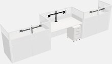 Postes De Travail Rectangulaires Blancs Pour 3 Personnes - Formation En Zigzag + Tiroirs Mobiles En Métal Blanc