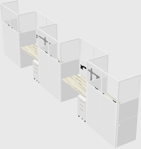 Postes De Travail Rectangulaires Heinne Holz Pour 5 Personnes - Disposition En Zigzag + Tiroirs Mobiles En Métal Blanc