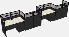 Postes De Travail Rectangulaires Heinne Holz Pour 4 Personnes - Formation En Zigzag + Tiroirs Mobiles En Métal Noir