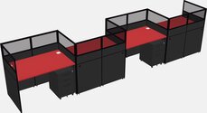 Postes De Travail Rectangulaires Prism Red Pour 4 Personnes - Formation En Zigzag + Tiroirs Mobiles En Métal Noir