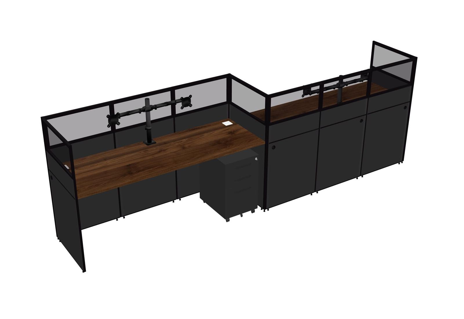 Postes De Travail Rectangulaires En Noyer Columbia Pour 2 Personnes - Formation En Zigzag + Tiroirs Mobiles En Métal Noir