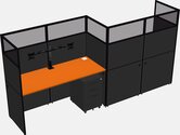 Postes De Travail Rectangulaires Orange Pour 2 Personnes - Formation En Zigzag + Tiroirs Mobiles En Métal Noir