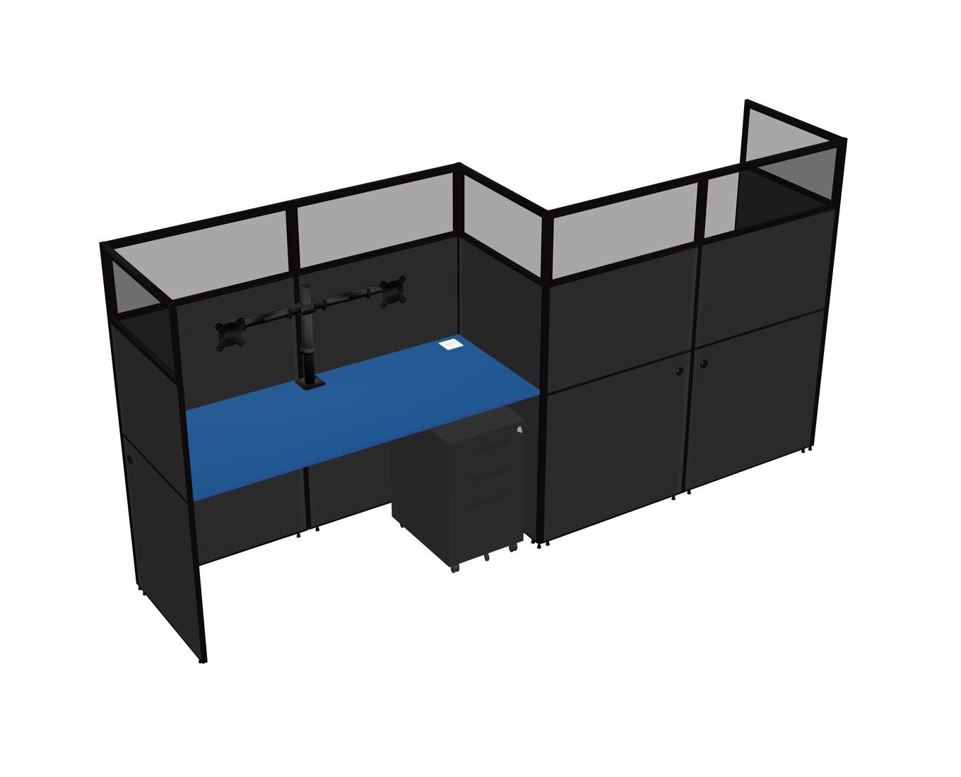 Postes De Travail Rectangulaires Prism Blue Pour 2 Personnes - Formation En Zigzag + Tiroirs Mobiles En Métal Noir