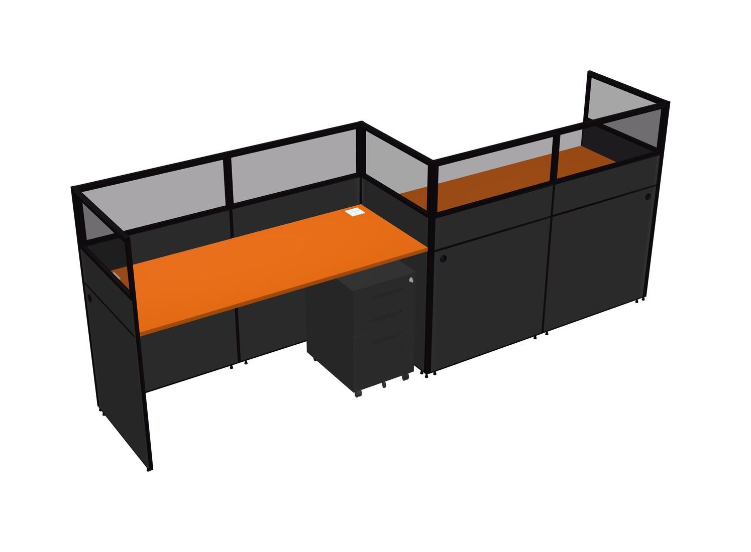 Postes De Travail Rectangulaires Orange Pour 2 Personnes - Formation En Zigzag + Tiroirs Mobiles En Métal Noir